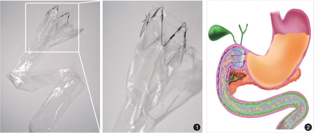 简单来说,医生借助胃镜,将一个长约60厘米的套管置入患者的小肠起始段,套管在十二指肠球部用镍钛合金锚定,远端自然延伸到空肠。