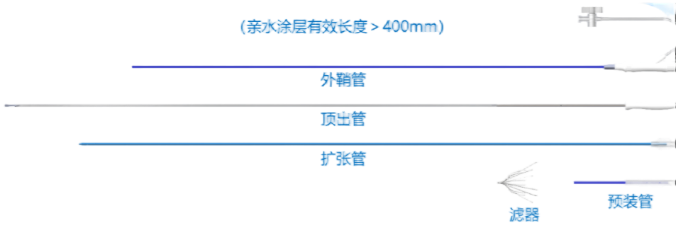 回收钩支撑臂为弧形设计可有效避免勾连鞘管,顺畅回收降低血管损伤,延长滤器的回收时间窗。