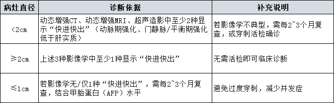 诊断需结合病灶大小、影像学特征及肿瘤标志物:
