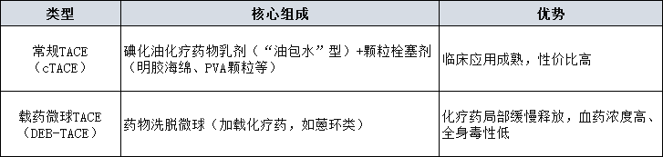除TACE外,肝癌血管内介入还包括动脉栓塞(TAE,无化疗药,不单独用)、肝动脉灌注化疗(HAIC)、放射性栓塞(TARE,如钇-90微球,属近距放疗),但临床以cTACE和DEB-TACE为主。