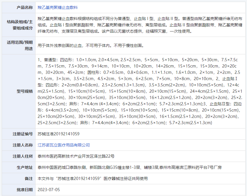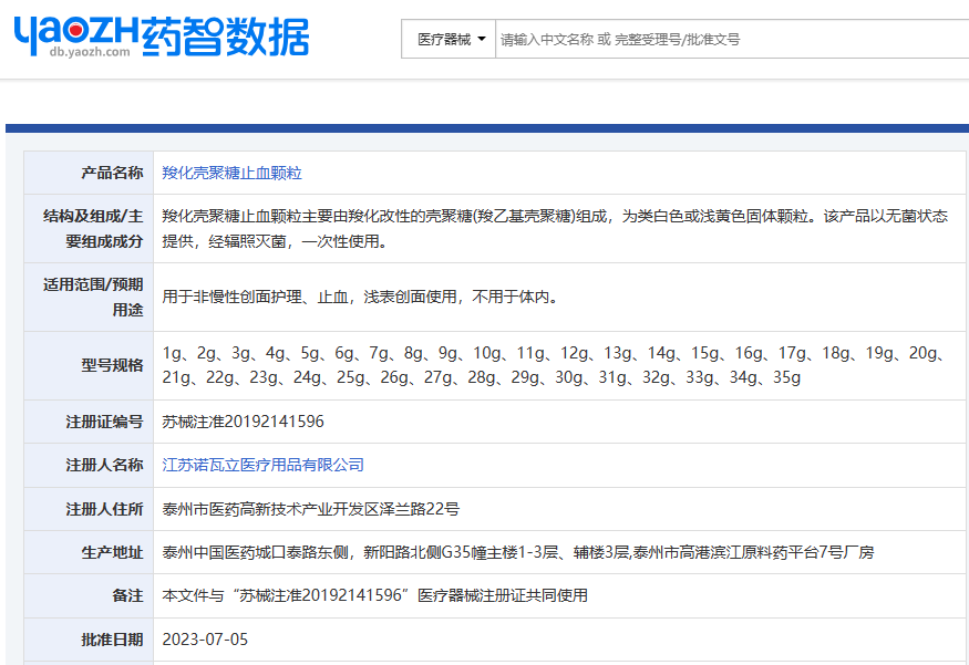 江苏诺瓦立医疗用品有限公司-羧化壳聚糖止血颗粒、
