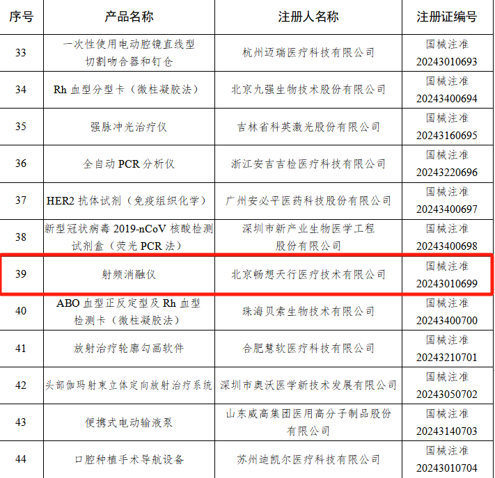 获批的292款医疗器械中,就有我们的申办方北京畅想天行医疗技术有限公司研发的射频消融仪,该产品是一款用于肝脏实体肿瘤消融的设备。